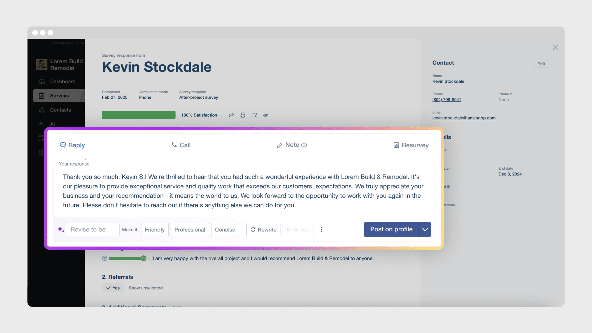 Our team successfully built a scalable and responsive toolbar within the UI of our products, enabling several thousand MAU's to generate and edit AI-written responses to customers. The project led to $17K in new MRR and preservation of $140K in existing MRR with 0% churn.