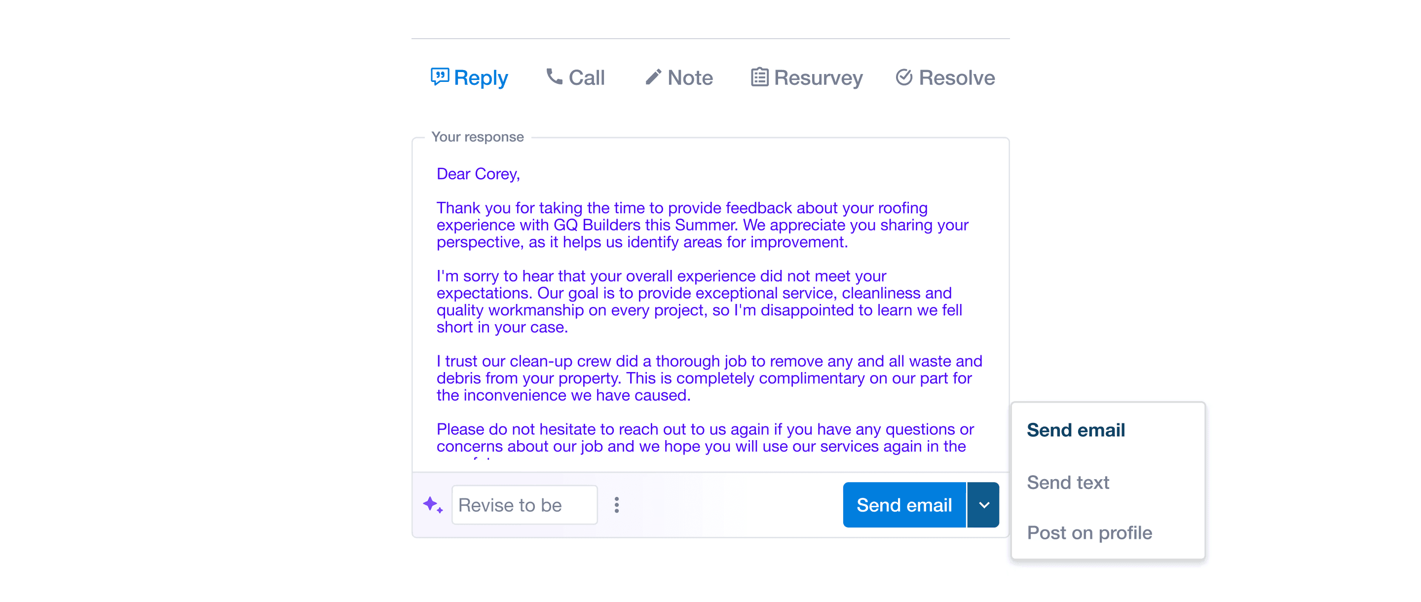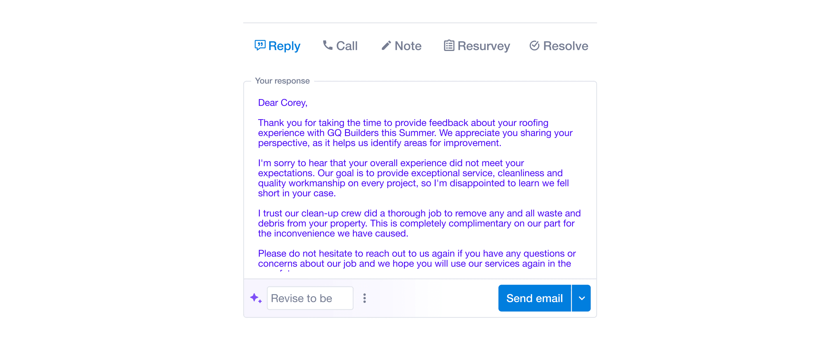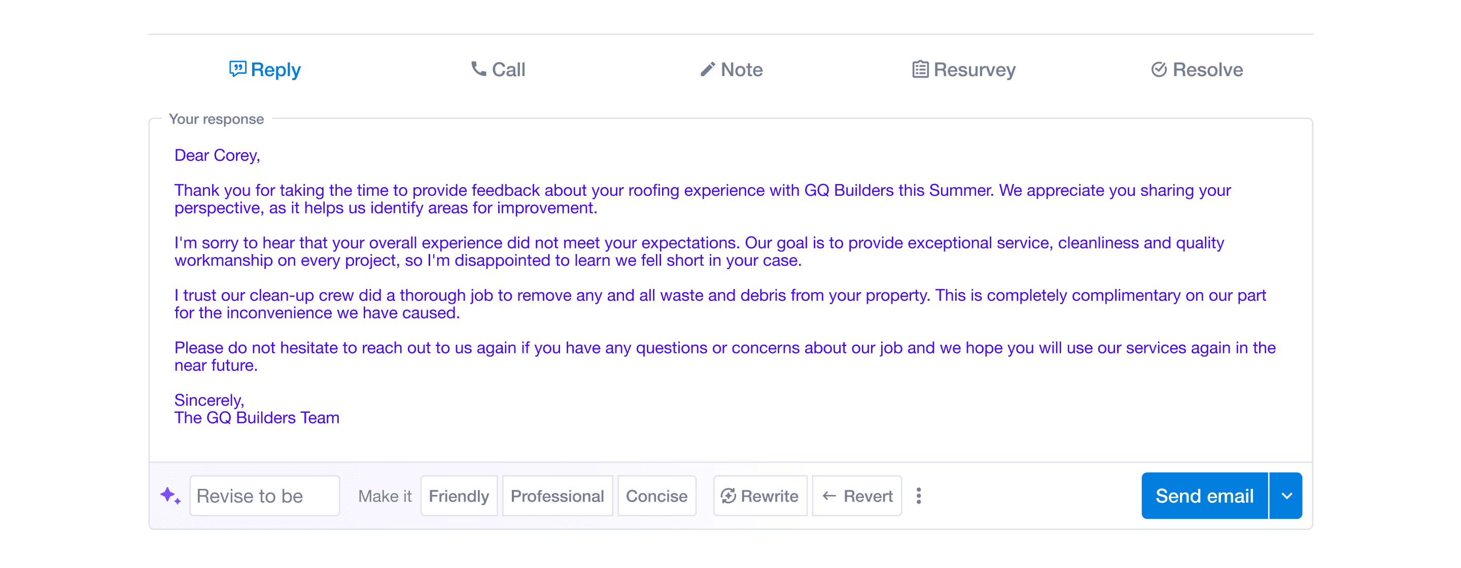 Draft a written response to their customers using AI