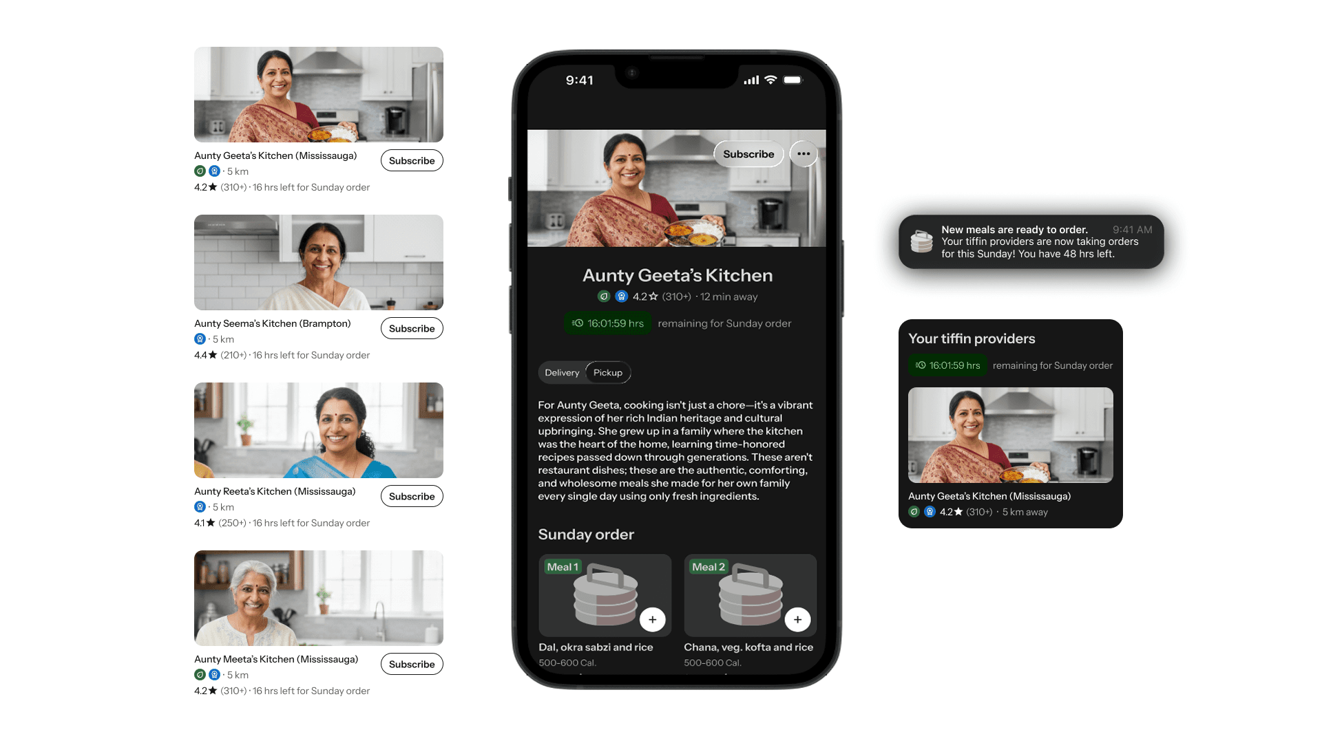 Across Toronto's suburbs, many people run tiffin services, cooking fresh meals for working professionals and families. These TSPs (tiffin service providers) manage everything manually via WhatsApp or clunky tiffin websites —limiting them to 10-15 customers before coordination becomes overwhelming.